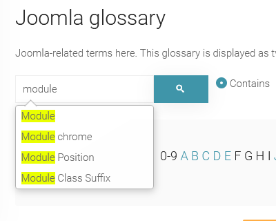 Alter Glossary 3.6.0 with search suggestions