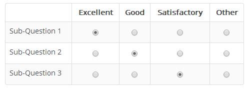 - Feature: new question type 'Rating Table' allows to display table of multiple sub-questions with single option per question.